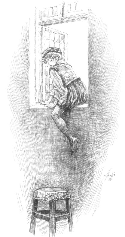 So at cockcrow next morning Nick slipped out of his straw bed, into his clothes, and down the winding stair, while his parents were still asleep in the loft, and, sousing his head in the bucket at the well, began his work before the old town clock in the chapel tower had yet struck four.