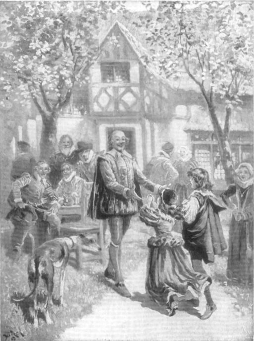 “Thou’lt do it, Attwood—why, of course thou’lt do it,” said Master Shakspere. “’Tis an excellent good plan. These funds we hold in trust will keep thee easy-minded, and warrant thee in doing well by both our little folks. And what’s more,” he cried, for the thought had just come in his head, “I have ever heard thee called an honest man; hard, indeed, perhaps too hard, but honest as the day is long. Now I need a tenant for this New Place of mine—some married man with a good housewife, and children to be delving in the posy-beds outside. What sayst thou, Simon Attwood? They tell me thy ’prentice, Job Hortop, is to marry in July—he’ll take thine old house at a fair rental. Why, here, Neighbor Attwood, thou toil-worn, time-damaged tanner, bless thy hard old heart, man, come, be at ease—thou hast ground thy soul out long enough! Come, take me at mine offer—be my fellow. The rent shall trickle off thy finger-tips as easily as water off a duck’s back!”
