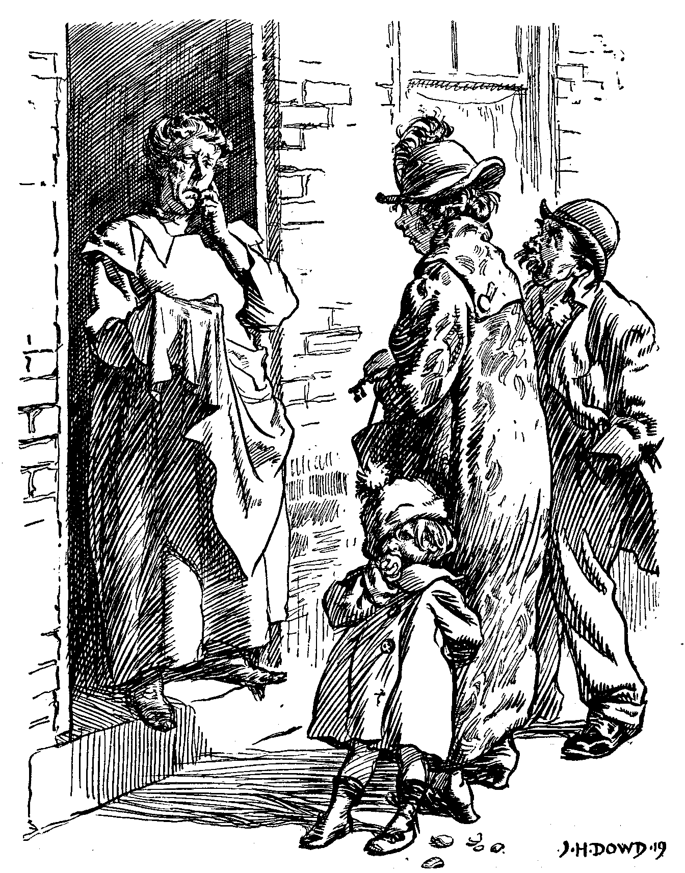 "—this party walkin' down Whitehall casual-like, as if the place belonged to 'im instead of to us. 'What ho!' I says to myself, 'this 'ere chap looks like a counter-revolution'ry;' and with that I comes closer to 'im. Sure enough he was wearin' a 'igh collar, about three inches 'igh, I should say, all white an' shiny, straight from the lorndry. I could 'ardly believe my eyes."
