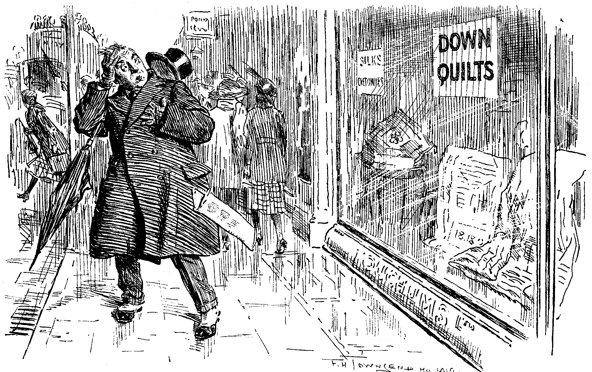 Passed the beautiful young Countess of Southshire walking near Belgrave Square yesterday. As usual, she was parfaitement mise. Was sorry for her sake, but glad for my own, to hear her sneeze twice, for she is considered to have easily the most musical sneeze in London. Talk of sneezing, during the 'flu epidemic Madame Fallalerie has been giving a course of lessons, "How to sneeze prettily" (twenty guineas the course), and her reception-rooms in Bond Street have been simply packed.