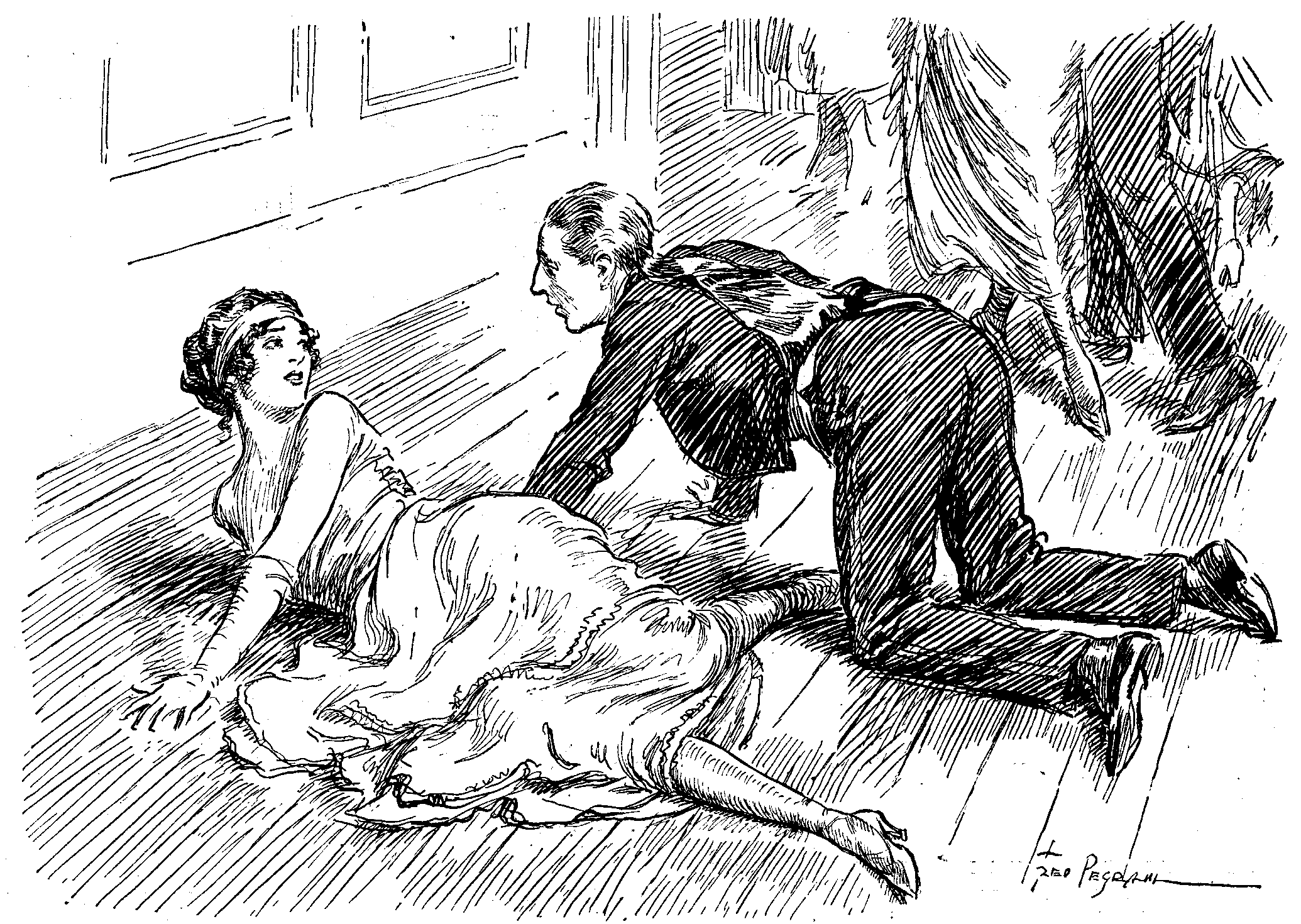 A propos, I popped into the dressing-room of the ever-delightful Miss Frillie Farrington at the Incandescent the other evening and had the joy of seeing her put on that sweet ickle f'ock she wears for the Jazz supper scene in Oh My! All the materials used are three yards of embroidered chiffon, six yards of tinsel fringe and six dozen tinsel tassels; and anything so completely swish and so immensely tra-la-la you simply never!