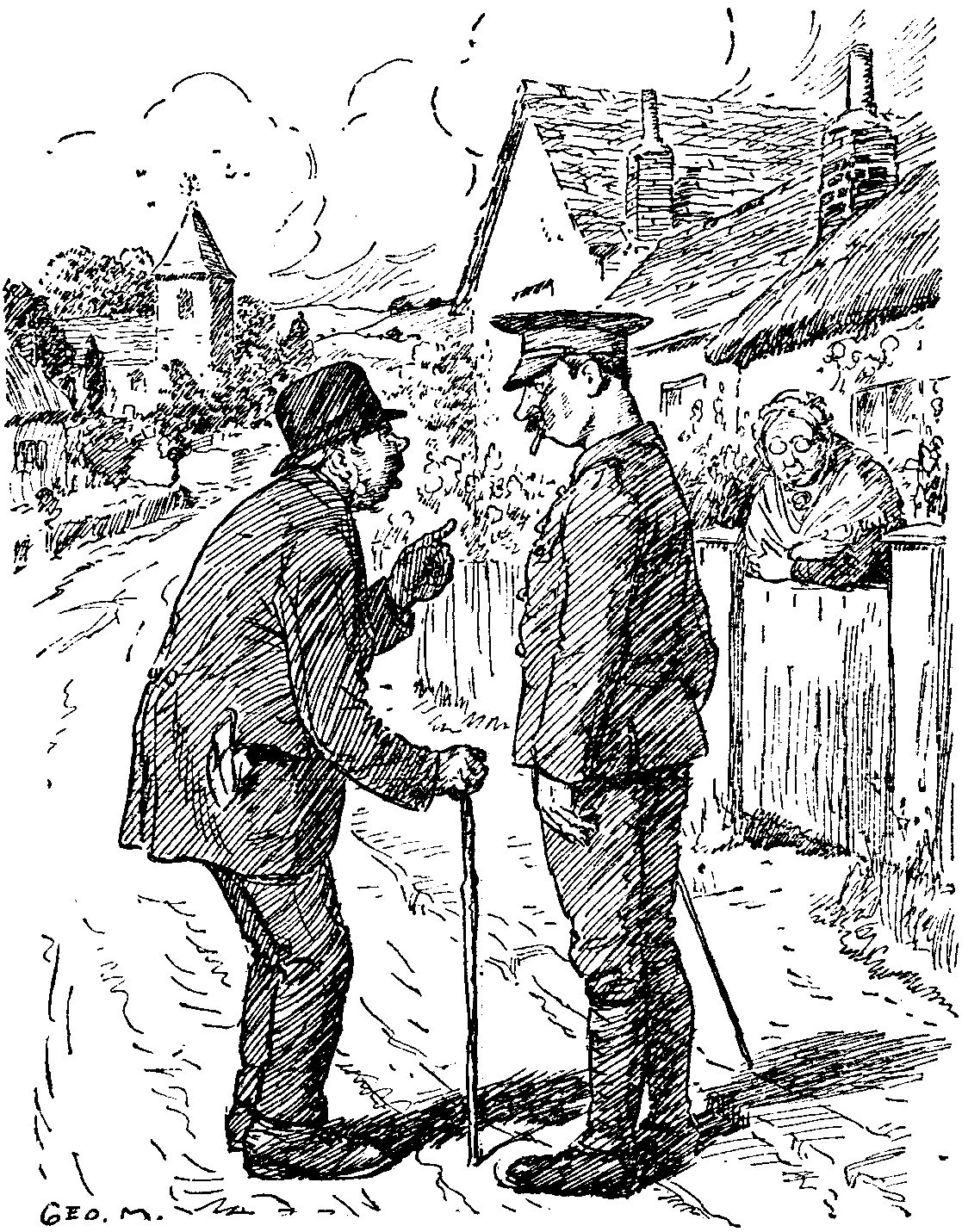 Old Villager. "OH, WE AIN'T SUCH STICK-IN-THE-MUDS AS YOU MAKE OUT, MY LAD. W'Y AIN'T YOU NOTICED THAT OLD MRS. HUBBLE 'AS GOT A NEW PAIR O' SPECS?"