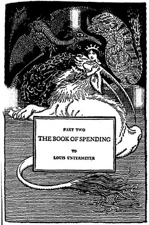 It followed that—among the futile persons who use serious, long words in talking about mere books,—aggrieved reproof of my auctorial malversations, upon the one ground or the other, became in 1921 biloquial and pandemic. Not many other volumes, I believe, have been burlesqued and cried down in the public prints by their own dedicatees.... But from the cicatrix of that healed wound I turn away. I preserve a forgiving silence, comparable to that of Hermione in the fifth act of "A Winter's Tale": I resolve that whenever I mention the names of Louis Untermeyer and H.L. Mencken it shall be in some connection more pleasant, and that here I will not mention them at all.