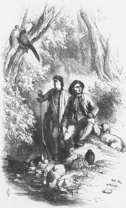 As we were talking, Jack had been trying, with many grimaces, to force an oyster open with his knife. I laughed at his vain endeavours, and putting some on the fire, showed him them open of themselves. I had no taste for oysters myself; but as they are everywhere accounted a delicacy, I advised my sons to try them. They all at first declined the unattractive repast, except Jack, who, with great courage, closed his eyes, and desperately swallowed one as if it had been medicine. The rest followed his example, and then all agreed with me that oysters were not good. The shells were soon plunged into the pot to bring out some of the good soup; but scalding their fingers, it was who could cry out the loudest. Ernest took his large shell from his pocket, cautiously filled it with a good portion of soup, and set it down to cool, exulting in his own prudence. “You have been very thoughtful, my dear Ernest,” said I; “but why are your thoughts always for yourself; so seldom for others? As a punishment for your egotism, that portion must be given to our faithful dogs. We can all dip our shells into the pot, the dogs cannot. Therefore, they shall have your soup, and you must wait, and eat as we do.” My reproach struck his heart, and he placed his shell obediently on the ground, which the dogs emptied immediately. We were almost as hungry as they were, and were watching anxiously till the soup began to cool; when we perceived that the dogs were tearing and gnawing Fritz’s agouti. The boys all cried out; Fritz was in a fury, took his gun, struck the dogs, called them names, threw stones at them, and would have killed them if I had not held him. He had actually bent his gun with striking them. As soon as he would listen to me, I reproached him seriously for his violence, and represented to him how much he had distressed us, and terrified his mother; that he had spoiled his gun, which might have been so useful to us, and had almost killed the poor animals, who might be more so. “Anger,” said I, “leads to every crime. Remember Cain, who killed his brother in a fit of passion.” “Oh, father!” said he, in a voice of terror; and, acknowledging his error, he asked pardon, and shed bitter tears.