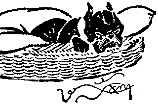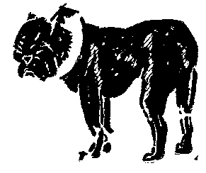 The sunny porch. TOBY-DOG and KIKI-THE-DEMURE sprawl on the hot stone-flags, taking their after luncheon nap. The silence of Sunday prevails, yet TOBY-DOG is not asleep: the flies and a heavy luncheon torment him. Hind-quarters flattened out frog-fashion, he drags himself on his belly up to KIKI-THE-DEMURE whose striped body is perfectly quiet.
