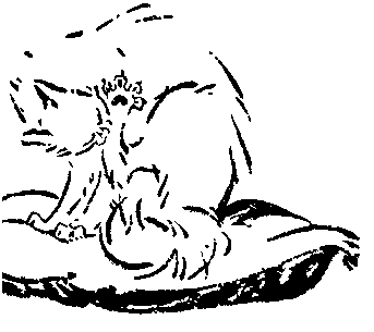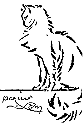 All that, yes...and the habits of the year before that one finds again, molded to one's shape, like a cushion marked with the imprint of a long sleep...the long nights of freedom, when the lone owlet, with his sad little laugh, makes his way through the air as quietly as I do on the ground, and silvery gray rats cling to the vines, eating grapes and keeping their eyes on me at the same time. It's the sun-cure on the hot stone-wall, from which I arise wan and shrunken, baked through and through, but svelte enough to make the youngest tomcat envious. (Coming back to the present with a murderous look at THE LITTLE DOG.) Death to you, ill-smelling beast, for having evoked these by-gone joys! Aren't you going to disappear, that I may come down from this cold pedestal, where my paws are growing numb?