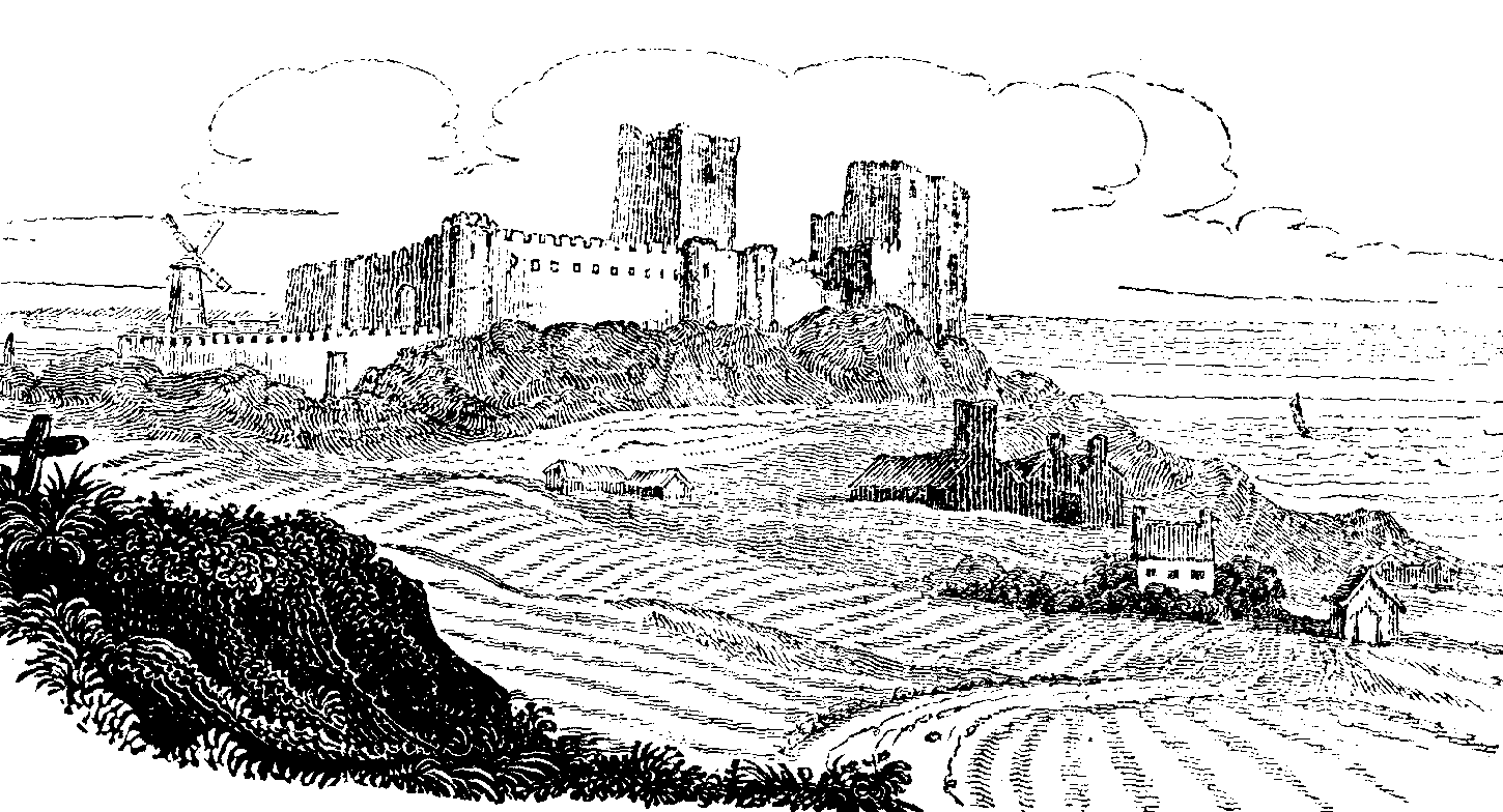 Is situate on the romantic coast of Northumberland, "over against" an obscure town of the same name. It stands upon a basalt rock, of a triangular shape, high, rugged, and abrupt on the land side; flanked by the German Ocean, and strong natural rampires of sand, matted together with sea rushes on the east; and only accessible to an enemy on the south-east, which is guarded by a deep, dry ditch, and a series of towers in the wall, on each side of the gateway. Nature has mantled the rock with lichens of various rich tints: its beetling brow is 150 feet above the level of the sea, upon a stratum of mouldering rock, apparently scorched with violent heat, and having beneath it a close flinty sandstone. Its crown is girt with walls and towers, which on the land side have been nearly all repaired. The outer gateway stands between two fine old towers, with time-worn heads; twelve paces within it is a second gate, which is machicolated, and has a portcullis; and, within this, on the left hand, on a lofty point of rock, is a very ancient round tower of great strength; commanding a pass subject to every annoyance from the besieged. This fort is believed to be of Saxon origin. The keep stands on the area of the rock, having an open space around it. It is square, and of that kind of building which prevailed from the Conquest till about the time of our second Henry. It had no chimney; but fires had been made in the middle of a large room, which was lighted by a window near its top, three feet square. All the other rooms were lighted by slit or loop holes, six inches broad. The walls are of small stones, from a quarry at Sunderland on the sea, three miles distant: within them is a draw well, discovered in 1770, in clearing the cellar from sand and rubbish; its depth is 145 feet, cut through solid rock, of which seventy-five feet are of whinstone. The remains of a chapel were discovered here, under a prodigious mass of land, in the year 1773; its architecture was pure Saxon, and the ancient font being found, was preserved in the keep. The chapel has been rebuilt on the old foundations.
