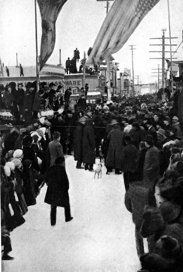 And crowds there were, too, to go through; for as on the Sweepstakes Days all of Nome had gathered to bid a final God Speed to the greatest dogs of Alaska—a Foreign Legion indeed—bound for the front.