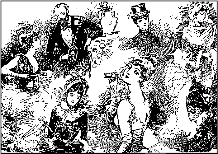 On ne donnera pas ici les titres ni les sujets des gravures qui enrichissent ce recueil. Le lecteur les devinera dans le crayon charmant de H. de Hem, qui si longtemps a été le Gavarni de la VIE PARISIENNE; de Ferdinand Bac, de Mars, de Mlle de Solar, qui avec H. de Hem représentent si spirituellement les belles mondaines de L'ART ET LA MODE. Ils ont achevé de donner à ces Douze Nouvelles nouvelles l'expression toute parisienne des aventures romanesques des dernières saisons.