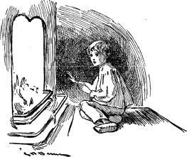 She thought so long that the candy was done before she was ready to tell the story; but while it cooled in plates outside on the window-sill, she drew Joyce to a seat beside her in the chimney-corner. With her feet on the fender, and the child's head on her shoulder, she began this story, and the firelight dancing on the walls, showed a smile on Joyce's contented little face.