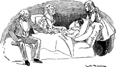 "HE TOOK THE LITTLE FELLOW'S HAND IN HIS."