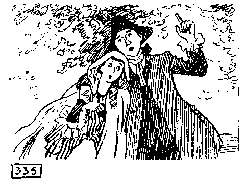 On scurried our little friend and on came the gendarmes. I was conscious of a feeling of physical sickness, and Frederick groaned aloud. As the dreadful moment of contact approached we shut our eyes tight and each gripped the other's hand. How long we remained like this I cannot tell, for we were both afraid to look and see the my smudge on the pavement indicating a hero's end; but eventually, by mutual arrangement, we opened our eyes, and then we saw—not a smudge, but Coleopteron still advancing quite unconcerned. It was a miracle.