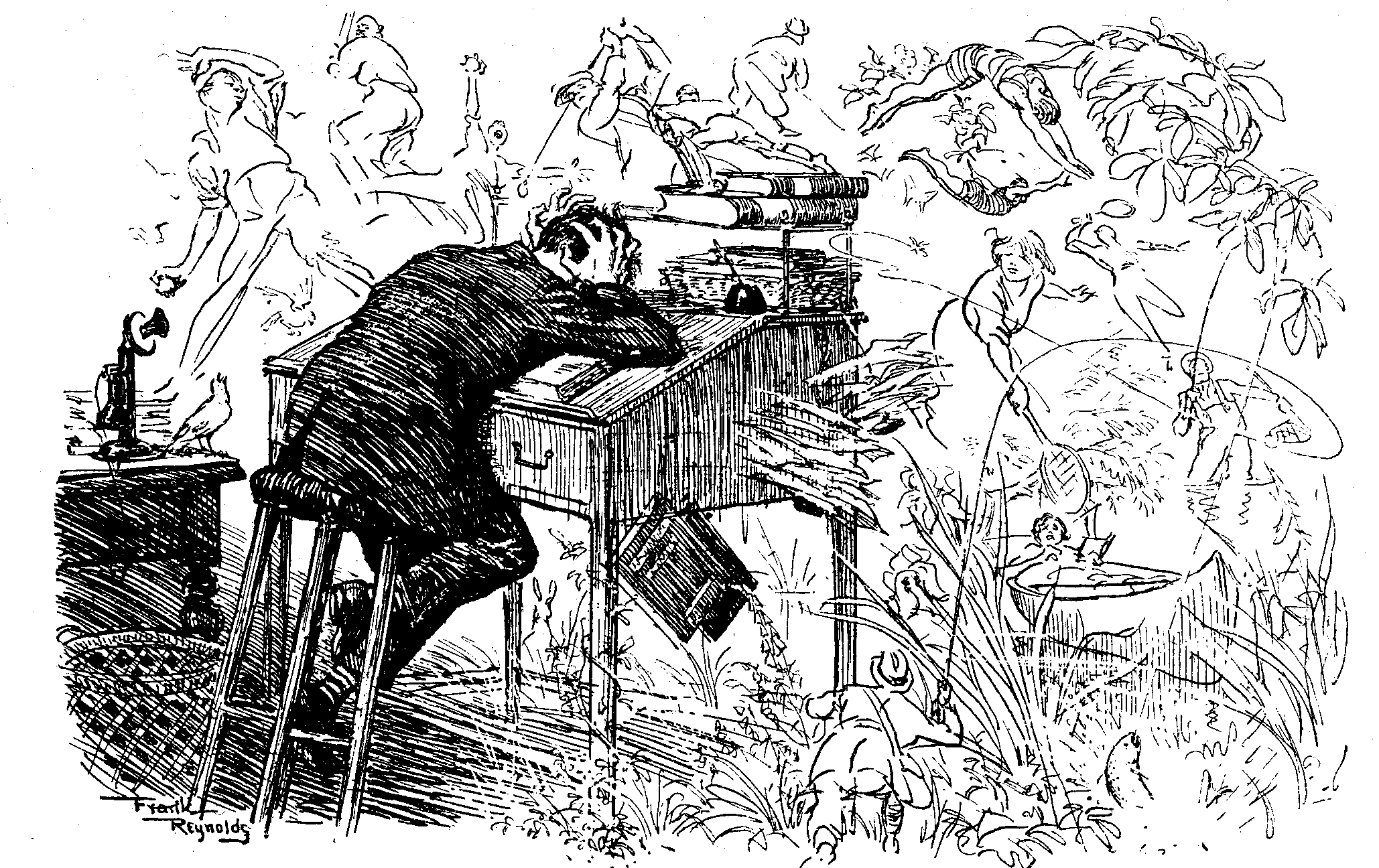 "I can't stand it any longer," cried Frederick, to the amazement of those sitting about us outside the café, "I shall go mad!" and, leaping up from his seat, he rushed across the promenade and, taking from his pocket a picture-postcard of some Hungarian beauty, he coaxed Coleopteron to walk on to it, then bore him triumphantly back and deposited him upon the leaf of a palm which overhung our table.