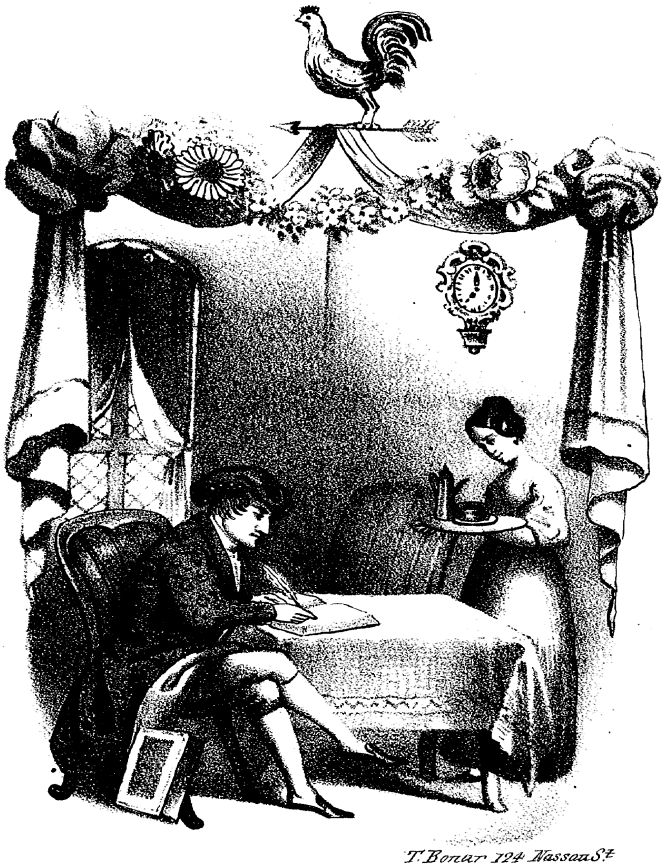 During this conference with the Laird and his friends, all of whom were honourable men, Mr. Salmon was induced to consent to have his treasures, his bonds, his notes and bills, consigned to such keeping as was judged most safe; neither, could these matters be settled, without a journey to town, in which Dymock accompanied him, together with a legal friend of the latter of known respectability. We do not enter into the particulars of this journey, but merely say, that Mr. Salmon in the joy, and we may add, thankfulness of recovering his child, not only permitted himself to be advised, but whilst in town made his will, by which, he left all he possessed to his daughter, and this being concluded to the satisfaction of all concerned, he returned to Dymock's Tower, laden with presents for Mrs. Margaret.