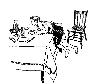 The glow of Miss Morgan's melted heart shone upon her face. Through a seraphic smile she spoke: "It's apple pie, too, Henry—your kind." As she put the supper upon the table, she asked: "Did you have a good time at the circus, Henry?"