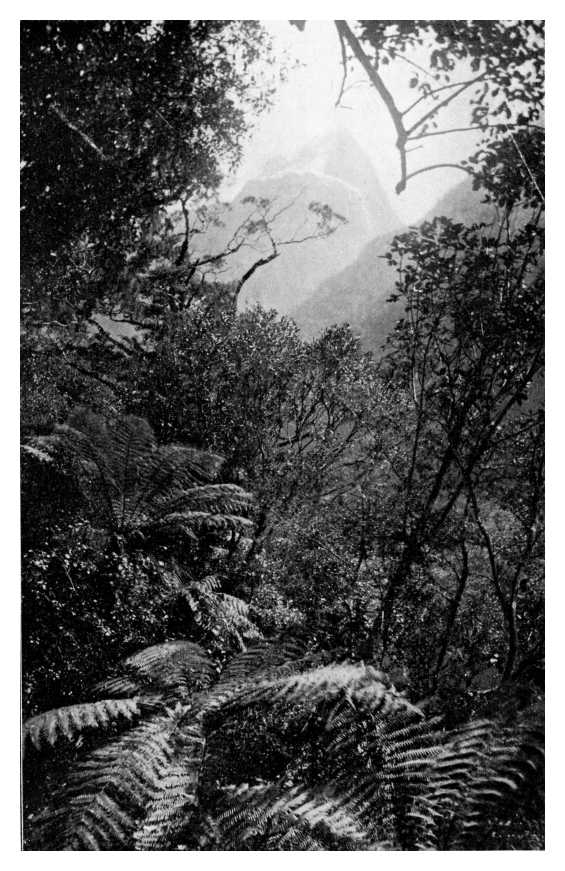But in New Zealand not only is the north in marked contrast with the south, but the contrast between the east and west is even more sharply defined. As a rule the two coasts are divided by a broad belt of mountainous country. The words "chain" and "spine" are misnomers, at any rate in the South Island, inasmuch as they are not sufficiently expressive of breadth. The rain-bringing winds in New Zealand blow chiefly from the north-west and south-west. The moisture-laden clouds rolling up from the ocean gather and condense against the western flanks of the mountains, where an abundant rainfall has nourished through ages past an unbroken and evergreen forest. Nothing could well be more utterly different than these matted jungles of the wet west coast—with their prevailing tint of rich dark green, their narrow, rank, moist valleys and steep mountain sides—and the eastern scenery of the South Island. The sounds or fiords of the south-west are perhaps the loveliest series of gulfs in the world. Inlet succeeds inlet, deep, calm, and winding far in amongst the steep and towering mountains. The lower slopes of these are clothed with a thick tangle of forest, where foliage is kept eternally fresh and vivid by rain and mist. White torrents and waterfalls everywhere seam the verdure and break the stillness.