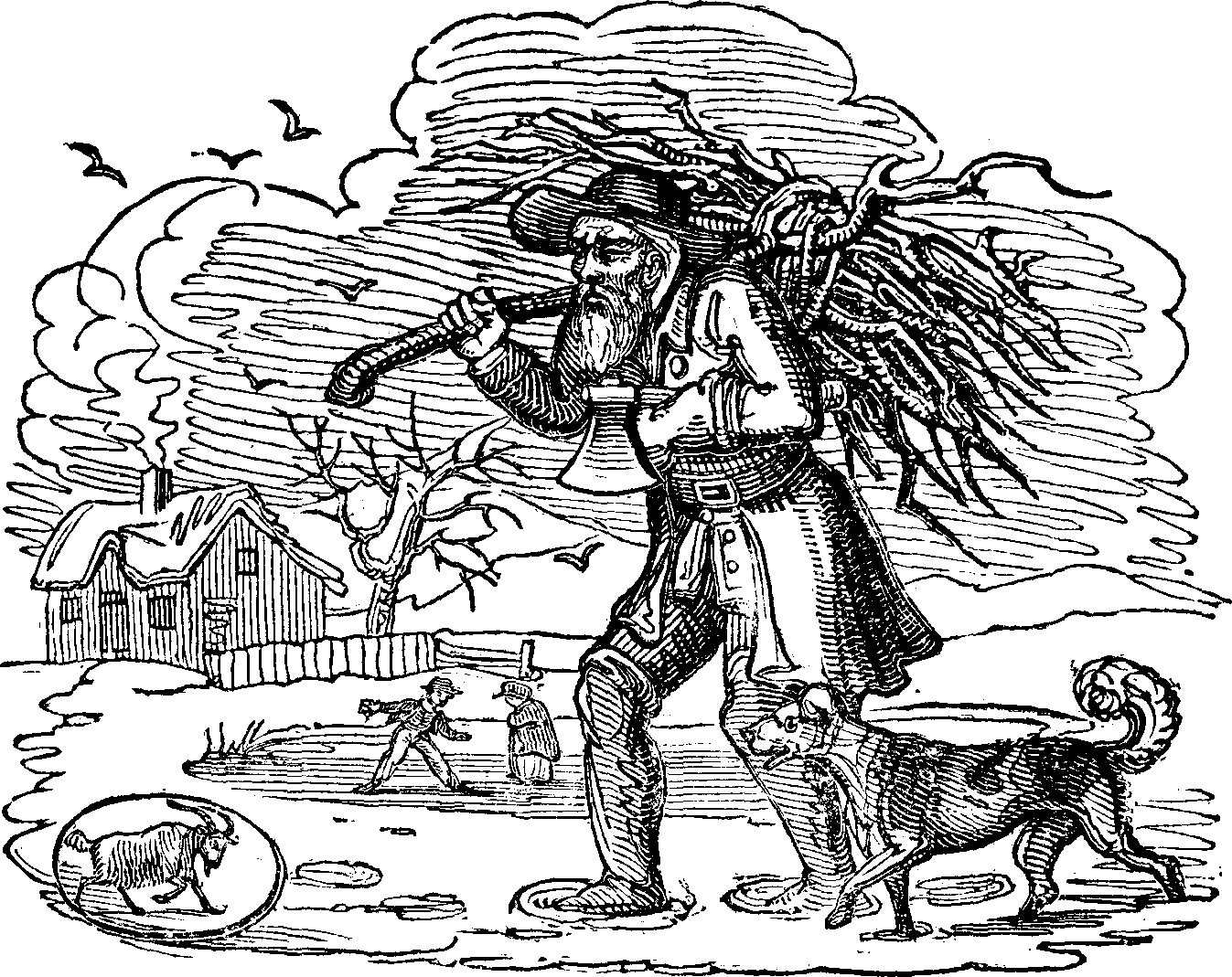 At Joe's approach, all was stir and bustle; the pigs, to the third and fourth generation, moved "in perfect phalanx," not "to the Dorian mood of flutes and soft recorders," but to their own equally inspiring grunt; varying from the shrill treble to the deep-toned bass. Jewler, too, ran barking; but with less interested feelings; and his little patron ran to take the whip.