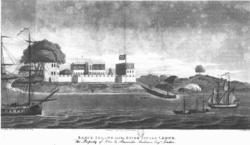 The view from the roads, some of the buildings near the shore being of stone, and upon even an elegant and convenient construction, is calculated to raise expectation upon approaching it, which is considerably lessened[**Transcriber's note: "lessoned" must be a typesetting error.] upon a nearer view; the streets being extremely narrow, and the huts of the natives huddled together without regularity or system. The inhabitants are governed in their local customs and capacities by a native mayor, and his advisers; but, of course, under the control of the commandant of the garrison; and this privilege is a mere matter of form and courtesy, which a lenient authority permits.