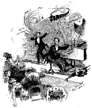 Première partie: ouverture exécutée par un vieux monsieur payé 80 fr. par mois pour éreinter l'ivoire de la maison Pleyel, à faire s'agiter les pieds énormes de nos chers voisins, les Anglais.