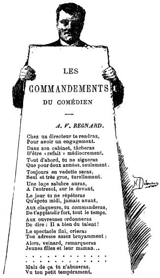 Il a décroché avec peine et protection un second accessit au temple du faubourg Poissonnière, où il n'est cependant resté que six ans. Cela lui suffit pour mettre sur ses cartes de visites «lauréat du Conservatoire» (lauréat! comme c'est malin, c'est pour le bourgeois, ça.)