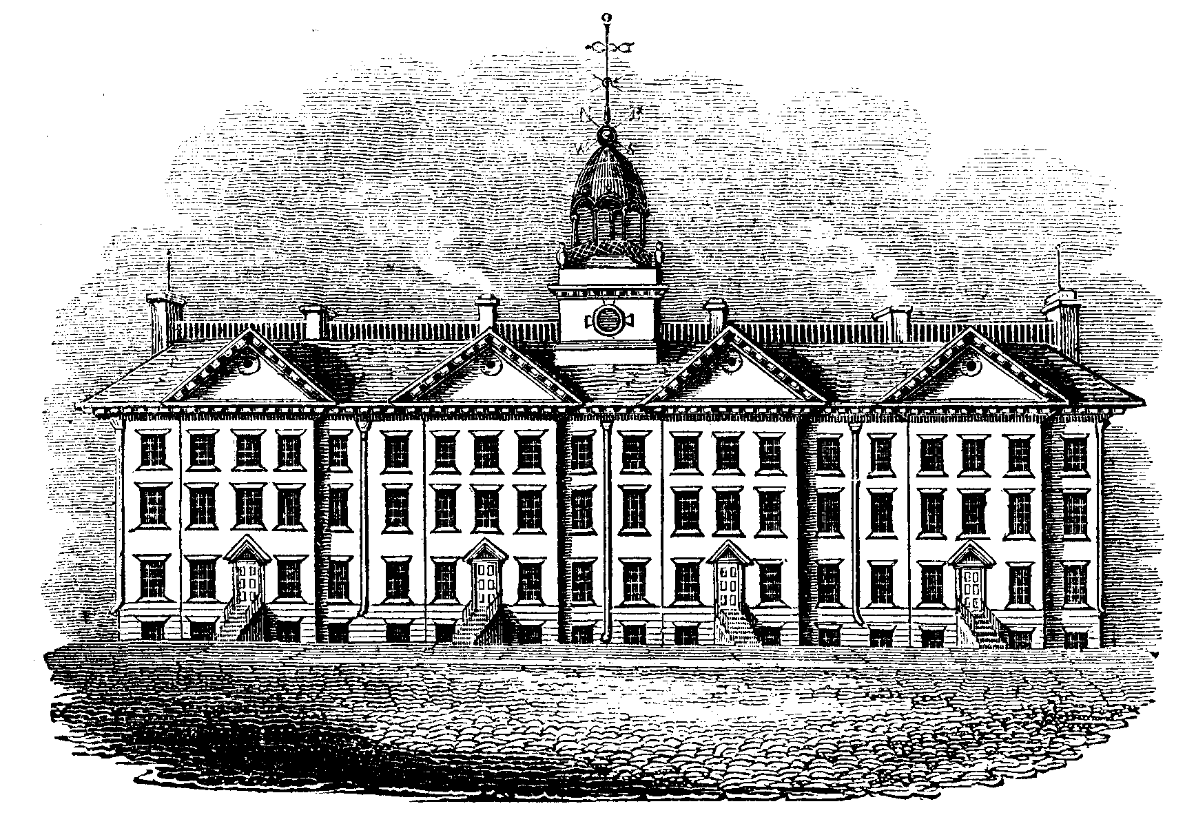 In 1813, the College of Physicians and the Medical School were united; and the academical and medical departments are together styled “The University of New York.” It is now well endowed and liberally patronized by the legislature of the state. The College consists of two handsome stone edifices, but the view given is but one-third of the originally intended structure, and contains a chapel, hall, library of 5,000 volumes, museum, anatomical theatre, and school for experimental philosophy.