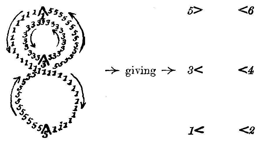 | B. Bars 5 to 8. and C. Bars 1 to 4. | Rings move to left, as single Ring previously, nearly double circuit. | " |