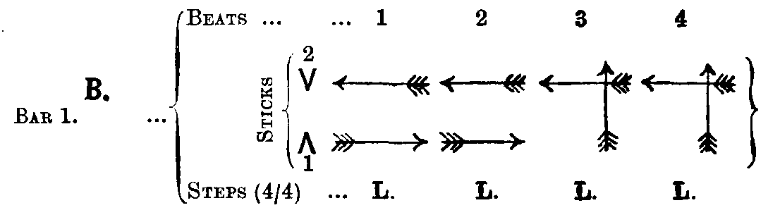 | A. (4th time). | Back-to back. Tap sticks as in A, 1st and 2nd time. | " |
