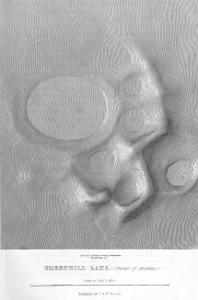 In two of the most remarkable, Mitre Lake and Greenhill Lake, a portion of the basin of each, between the hilly curves and the water, was filled by a dark-coloured perfectly level deposit, apparently of vegetable mould. This being of a quality different from that of the hills, it would appear that any process by which these heights may have originated through the agency of the water adjacent and the wind could not continue after this different formation had accumulated between them. Accordingly where this dark-coloured deposit is most extensive the curved hill concentric with the outer margin seems less perfect; but whether worn by time or sweeping inundations I cannot pretend to say.