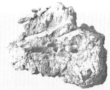 On the other hand it would appear from the position of the teeth in one skull (Figure 4 Plate 48) that they were only falling out from putrefaction at the time the skull was finally deposited in the breccia, and from the nearly natural position of the smaller bones in the foot of a dasyurus (Figure 2 Plate 51) it can scarcely be doubted that this part of the skeleton was imbedded in the cement when the ligaments still bound the bones together. The united radius and ulna of a kangaroo (Figure 1 Plate 51) are additional evidence of the same kind; and yet if the bones have been so separated and dispersed and broken into minute fragments, as they now appear in this breccia, while they were still bound together by ligaments, it is difficult to imagine how that could take place under any natural process with which we are acquainted.