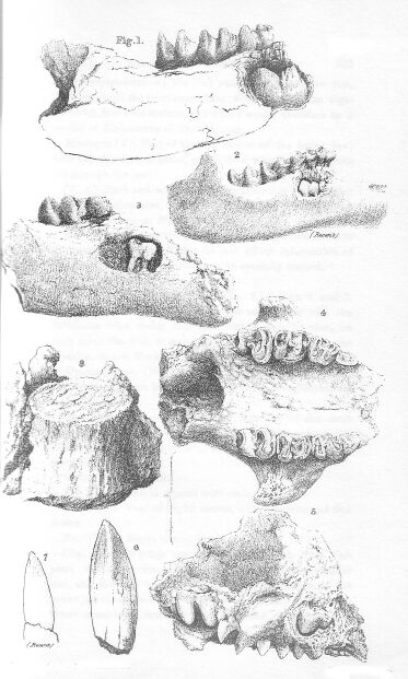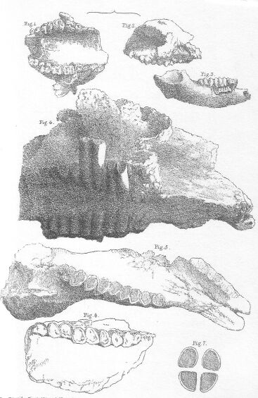 The position of the teeth in the specimen marked XI.c. Figure 7, which are wider apart; leads me to doubt whether it is the lower jaw of Dasyurus laniarius, or of some extinct marsupial carnivore of an allied but distinct species.
