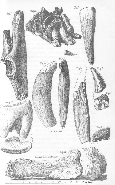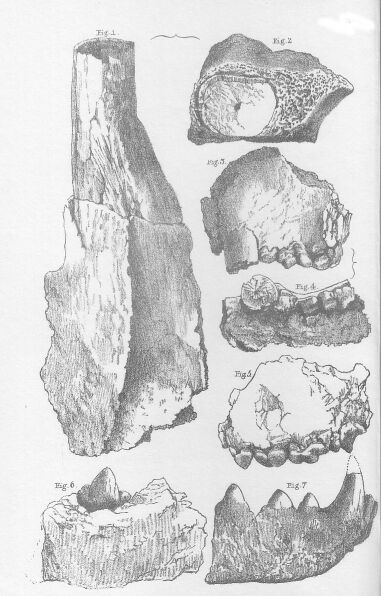 No entire skeleton has been discovered, and very rarely were any two bones of the same animal found together. On the contrary even the corresponding fragments of a bone were frequently detected some yards apart (as for instance those in Figures 2 and 1 Plate 49).