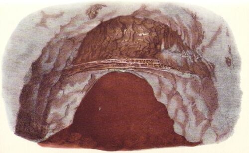 It may however be observed that the breccia is never found below ground without unequivocal proofs in the rocks accompanying it of disruption and subsidence, and that the best specimens of single bones have been found wedged between huge rocks, where the breccia occurs like mortar between them, in situations eight or ten fathoms underground.