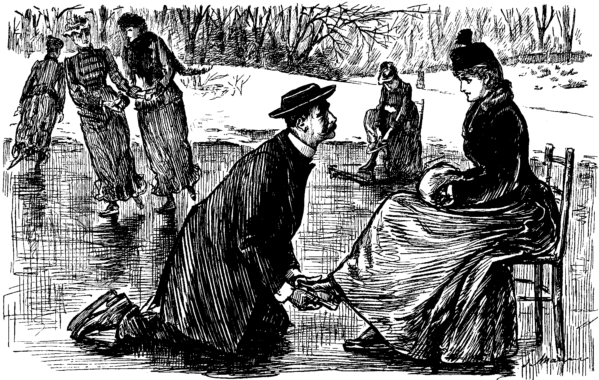"Well," I said, "ALBERT ROLLIT did tell me something about ATTORNEY-GENERAL going on the Spree. But that was in Germany, and he had his skates with him. Don't know how it'll be here. You mustn't forget that WILFRID's something of a wag. Wouldn't advise you to wait much after eleven o'clock."