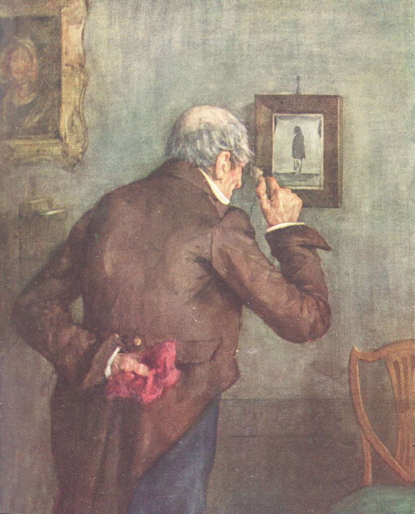 In the evening it began to rain, and they thought that and the coming darkness would drive her away; but when the servants looked out before barring the doors, there she was in the same posture. I was to perform the marriage ceremony at seven o’clock in the morning, for the young pair were to go that night to Edinburgh; and when I went, there was Meg sitting looking at the windows with her hands clasped. When she saw me she gave a shrill cry, and took me by the hand, and wised me to go back, crying out in a heart-breaking voice, “O, Sir! No yet—no yet! He’ll maybe draw back, and think of a far truer bride.” I was wae for her and very angry with the servants for laughing at the fond folly of the ill-less thing.