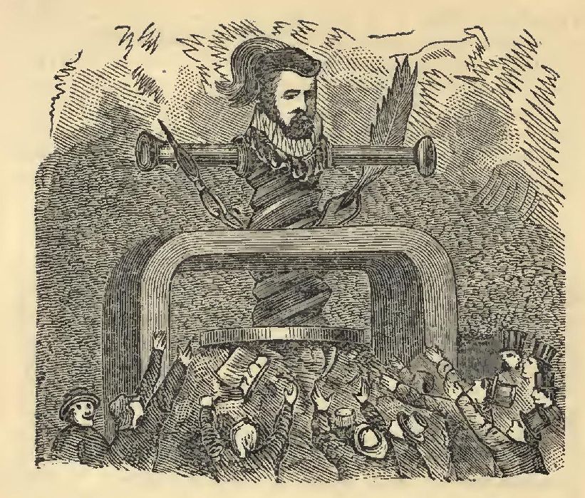 The lady was well pleased with this homage, which, she said, was greater than his offence. The guards, whose business it was to proceed to a verification, believed the culprit to be the devil, because never in their wits had they seen an “I” so perpendicular as was the old man. He was marched in triumph through the town to the palace of the duke, to whom the guards and others stated the facts. In that period of ignorance, this affair was thought so much of that the town voted the erection of a column on the spot where the old fellow gained his pardon, and he was portrayed thereon in stone in the attitude he assumed at the sight of that honest and virtuous lady. The statue was still to be seen when Rouen was taken by the English, and the writers of the period have included this history among the notable events of the reign.