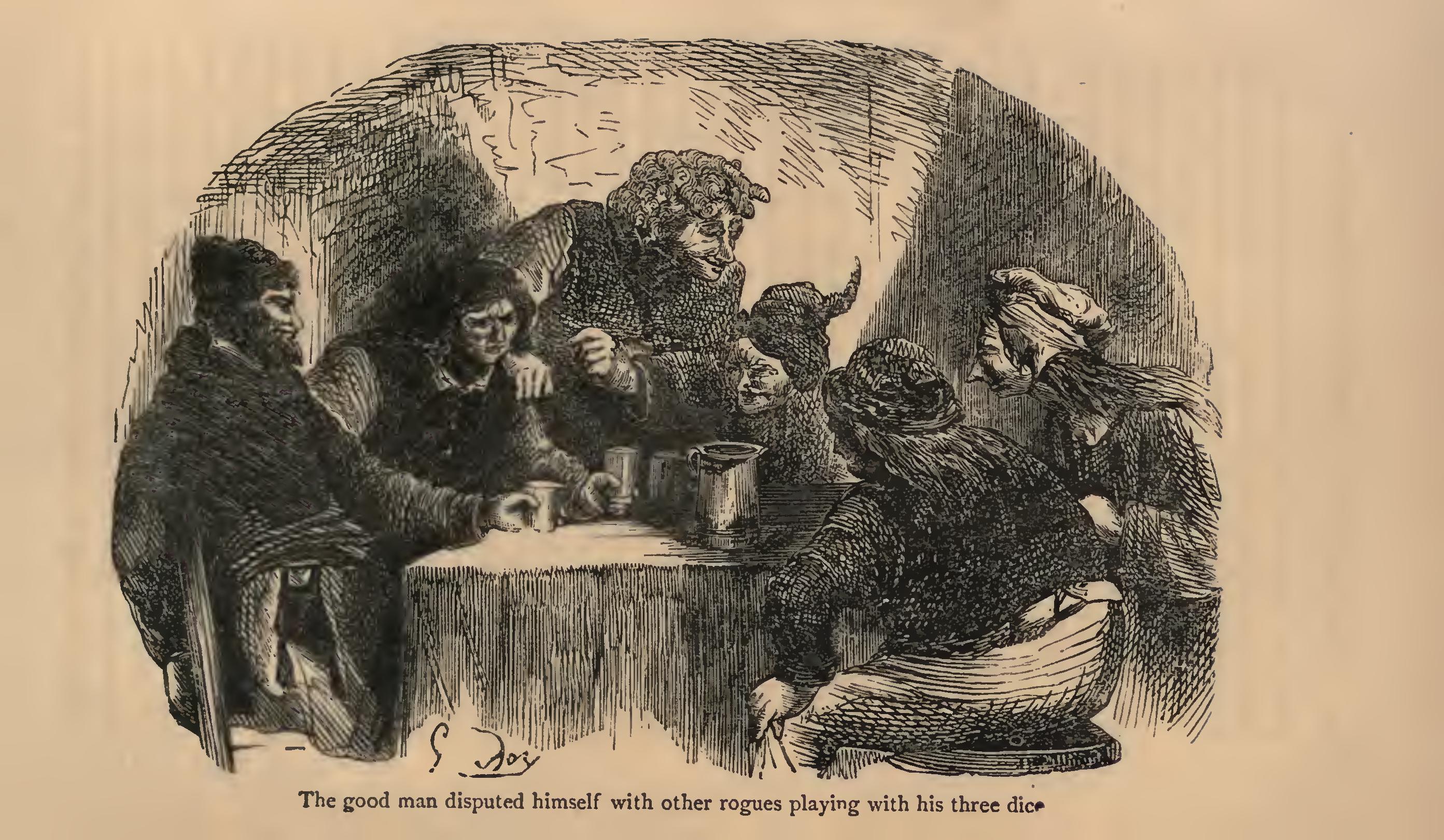 When the pope left his good town of Avignon to take up his residence in Rome, certain pilgrims were thrown out who had set out for this country, and would have to pass the high Alps, in order to gain this said town of Rome, where they were going to seek the remittimus of various sins. Then were to be seen on the roads, and the hostelries, those who wore the order of Cain, otherwise the flower of the penitents, all wicked fellows, burdened with leprous souls, which thirsted to bathe in the papal piscina, and all carrying with them gold or precious things to purchase absolution, pay for their beds, and present to the saints. You may be sure that those who drank water going, on their return, if the landlords gave them water, wished it to be the holy water of the cellar.
