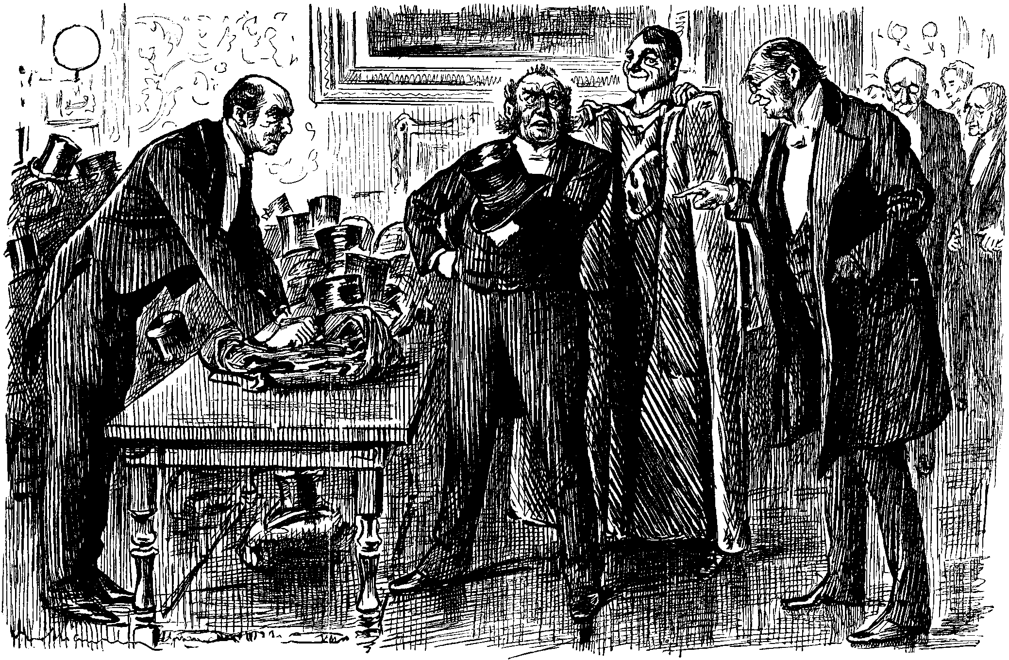 If the British Public possess that "taste for Art" and that "sense of humour" which some claim for and others deny to it, it (the B.P.) will throng the comfortable and well-lighted Gallery in New Bond Street, where hang some hundreds of specimens of the later work of the most unaffected humorist, and most masterly "Black-and-White" artist of his time. Walk up, Ladies and Gentlemen, and see—such miracles of delineation, such witcheries of effect, as were never before put on paper by simple pen-and-ink!