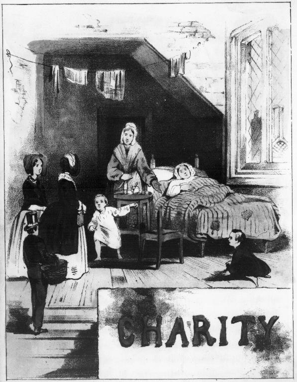 He had not gone far along the narrow lane towards the school, when two young ladies met him and asked him why he was crying. He told them that he was thinking of his poor sick mother. The ladies then asked him his name and where he lived, and said they would go and call upon his mother. He thanked them and dried up his tears, and went on to school with a much lighter heart.