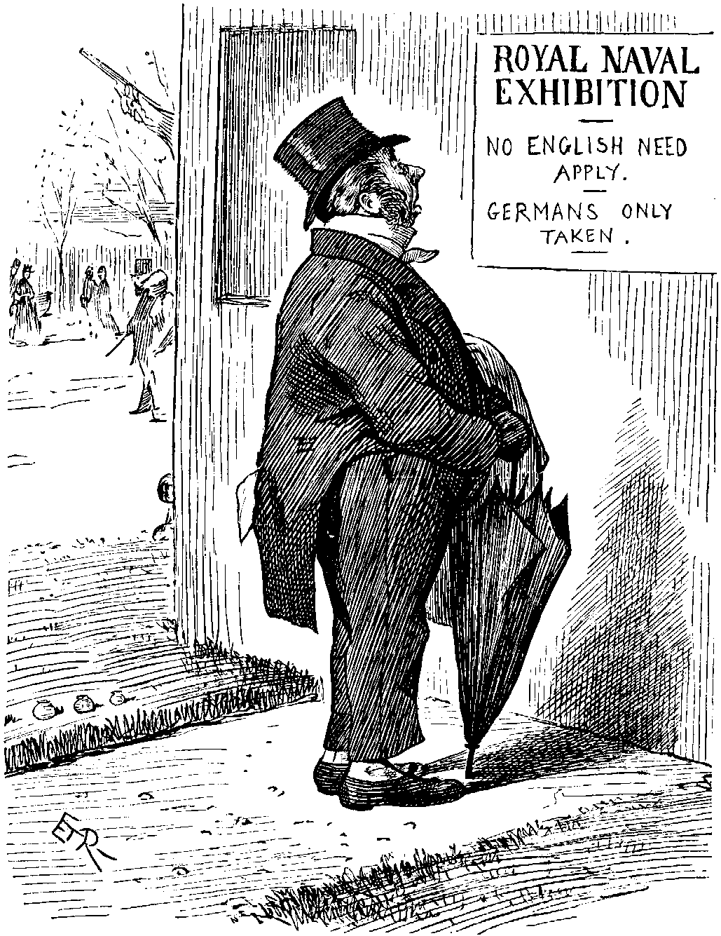 Well, things is cumming to a pretty pass, things is, when I'm acshally told that, as it used to be said formerly, "No Hirish need apply for nothing," so now, we are told, that no English Waiters need apply at the Royal Nawal Xhibishun unless he bes a German!