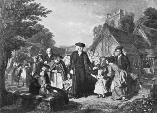 Goldsmith has given us a charming picture of an old-world parson in his Vicar of Wakefield, and Fielding sketches a no less worthy cleric in his portrait of the Rev. Abraham Adams in his Joseph Andrews. As a companion picture he drew the character of the pig-keeping Parson Trulliber, no scandalous cleric, though he cared more for his cows and pigs than he did for his parishioners.