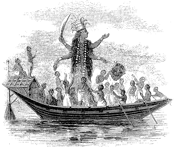 In my twelfth chapter, I spoke of the liberal donations which the heathen of India make for the support of their religion. In the city of Calcutta alone, it is supposed that two millions of dollars are spent every year on the festival of a single goddess—a festival which lasts only a few days. A single native has been known to give, as I before said, more than one hundred thousand dollars at one time to this festival, and afterwards thirty thousand dollars yearly. How vast, then, must be the sums which are spent upon all the different festivals of their gods. Would that we could see such liberality among Christians. Would that we could see the generality of them willing to give even one-tenth of their annual income to the Lord. Alas, what would the heathen say, if they were to learn how much greater are the sums of money which they give to their idols, than Christians give to honor their Saviour? Would they not exclaim, It is because Christianity is false, and heathenism is true, that Christians give so little for Christ, while we give so much for our gods? My dear children, I hope that you will never allow the heathen to say that the Christian religion is false, because you do not give your money for the spread of the Gospel. Will you not resolve now, that you will, so long as God prospers you in worldly goods, give at least one-tenth of all you earn to the Lord? Do, my dear children, do make the resolution now.