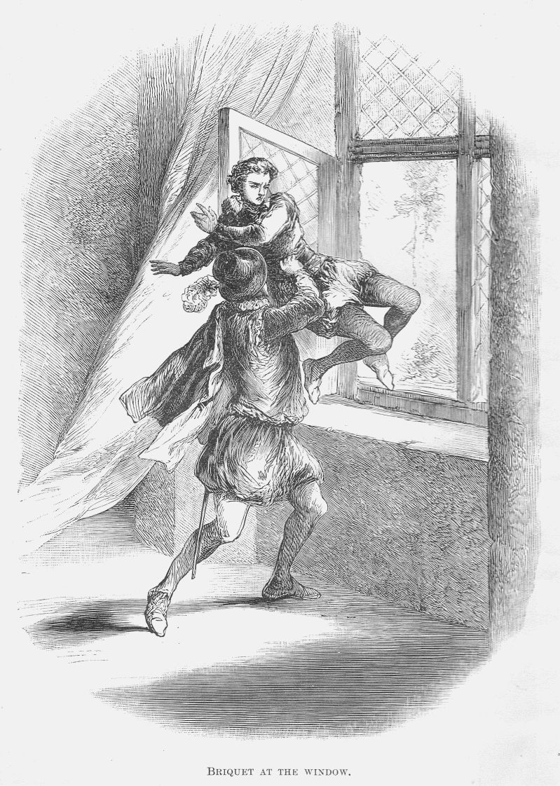 Joyeuse knocked at the wicket, and had his horses led away to the Rue des Marmouzets, fearing that their presence in the street might attract too much attention.