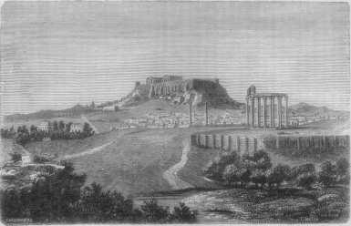 The city which rose upon this favored spot was worthy of its surroundings. The home of a free and enterprising race endowed with rare gifts of intellect and sensibility, and ever on the alert for improvement, it became the nurse of letters and of arts, while the luxury begotten of prosperity awakened a taste for adornment, and the wealth acquired by an extended commerce furnished the means of gratifying it. The age of Pericles was the period of the highest national development. At that time were reared the celebrated structures in honor of the virgin-goddess who was the patron of Athens—the Parthenon, the Propylaea, the Erechtheum—which crowned the Acropolis, and were the glory of the city as they were the masterpieces of Grecian architecture. During the preceding half century many works of utility and of splendor had been constructed, and the city now became renowned not only in Greece, but throughout the ancient world, for the magnificence of its public buildings. Thucydides, writing about this time, says that should Athens be destroyed, posterity would infer from its ruins that the city had been twice as populous as it actually was. Demosthenes speaks of the strangers who came to visit its attractions. But the changes of twenty-three centuries have passed upon this splendor—a sad story of violence and neglect—and the queenly city has long been in the condition of ruin imagined by Thucydides. Still, the spell of her influence is not broken, and the charm which once drew so many visitors to her shrines still acts powerfully on the hearts of scholars in all lands, who, having looked up to her poets, orators and philosophers as teachers and loved them as friends, long to visit their haunts, to stand where they stood, to behold the scenes which they were wont to view, and to gaze upon what may remain of the great works of art upon which their admiration was bestowed.