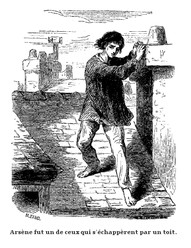 C'était bien le président des bousingots en chair et en os, en esprit et en vérité, que je pressais dans mes bras. Jeté parmi les morts dans l'église Saint-Méry, le jour du massacre, il s'était senti encore tenir à la vie par un fil, et, se traînant sur ces dalles ensanglantées, il était parvenu à se blottir dans un confessionnal, où un bon prêtre l'avait trouvé, recueilli et secouru le lendemain. Ce digne chrétien l'avait caché et soigné pendant plusieurs mois qu'il avait passés chez lui, toujours entre la vie et la mort. Mais comme c'était un homme timide et craintif, il lui avait beaucoup exagéré le résultat des persécutions essayées contre les victimes du 6 juin, et l'avait empêché de faire connaître son sort à ses amis, affirmant qu'il était impossible de le faire sans les compromettre et sans l'exposer lui-même aux rigueurs de la justice.