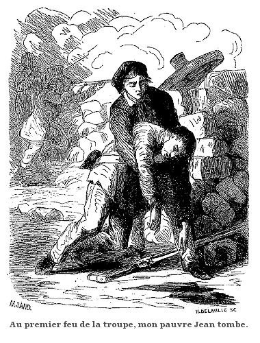 «J'avais alors l'esprit et le corps si affaibli, dit Laravinière en nous racontant son histoire, que je me laissai diriger comme le voulait mon bienfaiteur; et la peur de cet homme, admirable d'ailleurs, était si grande, qu'il n'attendit pas que je fusse transportable pour me conduire dans sa province. Il m'y laissa chez de bons paysans auvergnats, ses père et mère, qui m'ont tenu jusqu'à présent caché au fond de leurs montagnes, me soignant de leur mieux, me nourrissant fort mal, et me tourmentant beaucoup pour me faire confesser: car ils sont fort dévots, et mon état d'agonie continuelle leur donnait tous les jours à penser que le moment de rendre mes comptes était venu. Ce moment n'est pas éloigné; il ne faut pas vous faire illusion, mes chers amis, parce que vous me voyez sur mes jambes et assez fort pour donner la chasse à M. Horace Dumontet. Je suis frappe à fond, et sur toutes les coutures. J'ai deux balles dans la poitrine, et une vingtaine d'autres horions qui ne pardonnent pas. Mais j'ai voulu venir mourir sous le ciel gris de mon Paris bien-aimé, dans les bras de mes amis et de ma soeur Marthe. Me voilà bien content, habitué à souffrir, résolu à ne plus me soigner, enchanté d'avoir échappé à la confession, et tranquille pour le peu de temps qui me reste à vivre, puisque l'acte d'accusation des patriotes du 6 juin n'a pas fait mention de ma laide figure. Ah! dame! je ne suis pas embelli, ma pauvre Marthe, et vous ne devez plus craindre de tomber amoureuse de ce Jean que vous avez connu si beau, avec un teint si uni, une barbe si épaisse, et de si grands yeux noirs!»