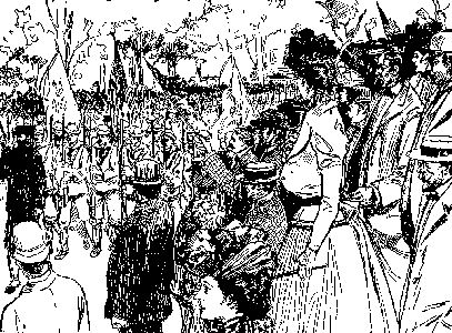 A navy-yard tug, sent by the Commandant, steamed alongside at two o'clock, and the company was marched on board without delay. The boys were eager to enter on this, their first real detail, and, in the rush to gain the deck of the tug, young Potter slipped from the rail and fell with a mighty splash into the water. "Man overboard!" bawled his nearest mate, and "Man overboard!" echoed one hundred and fifty voices. There was a scramble for the side, and the tug's deck hand, assisted by several of our fellows, fished Potter from the river with a boat hook.