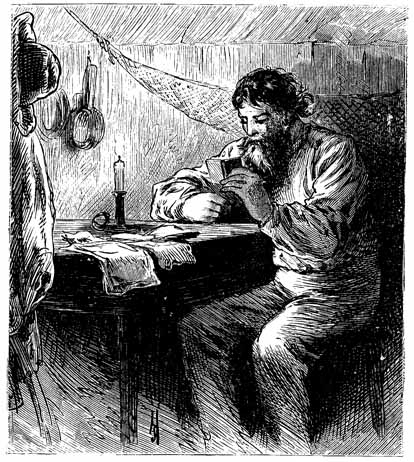 The captain raised himself in his berth, sat on the edge thereof, stood up, stared out of the window, and began to pace his room with his head down and his hands behind his back. Little by little he raised his head, drooped his hands, flung himself into a chair, beat the devil's tattoo on the table, sprang up excitedly, and exclaimed:
