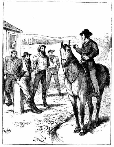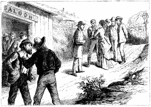 On the afternoon of the day on which the opening events of this story occurred, the boys, by agreement, stopped work two hours earlier than usual, for the stage usually reached Bottle Flat about two hours before sundown, and the one of that day was to bring the hated teacher. The boys had wellnigh given up the idea of further resistance, yet curiosity has a small place even in manly bosoms, and they could at least look hatred at the detested pedagogue. So about four o'clock they gathered at The Nugget so suddenly, that several fathers; who were calmly drinking inside, had barely time to escape through the back windows.