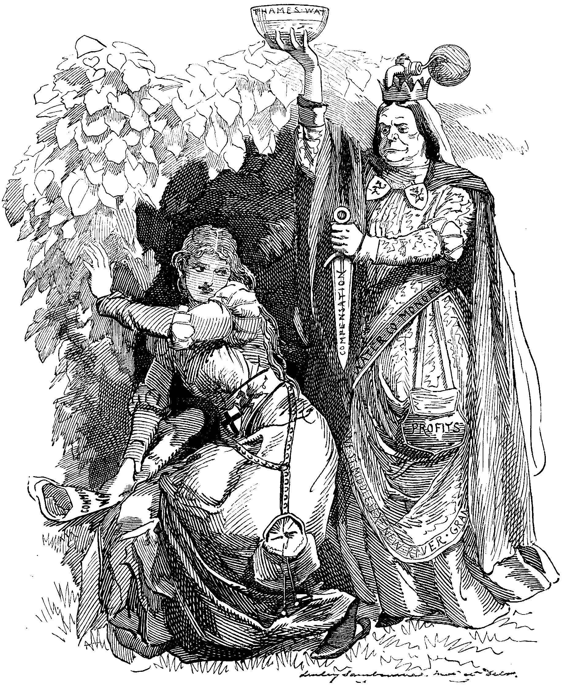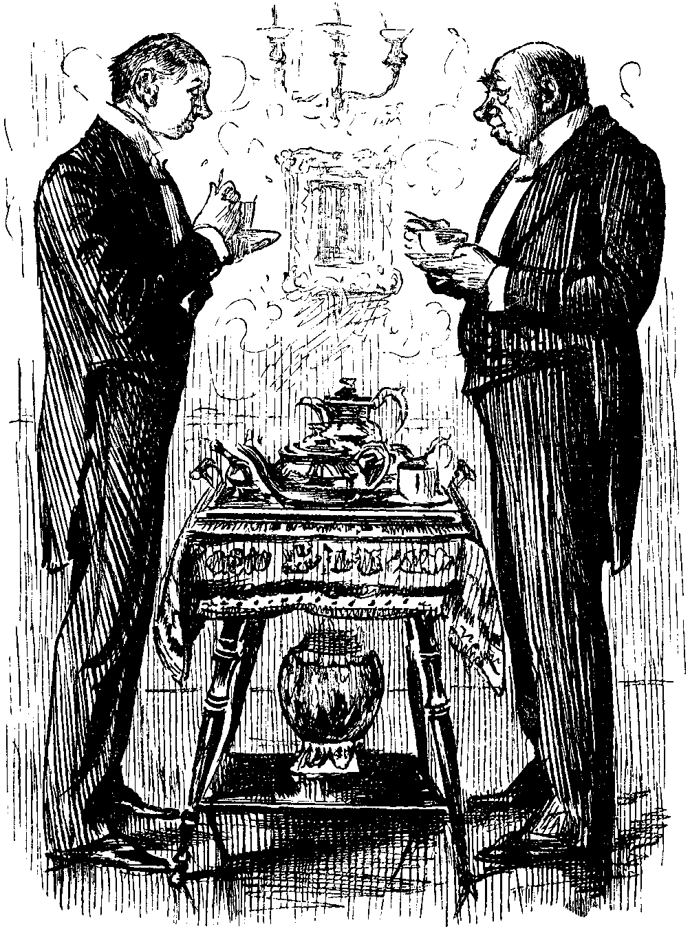 Subordinate (returning from telephone). Beg pardon, Gentlemen, but Messrs. KENDAL, FARREN, BROUGH and HARE say they are very sorry, but they are not at home; and Mr. IRVING presents his compliments, and would be delighted to do what we wish, but he fears he will be otherwise engaged. However, he says you have his sympathy, and his heart goes out to you. [Exit.