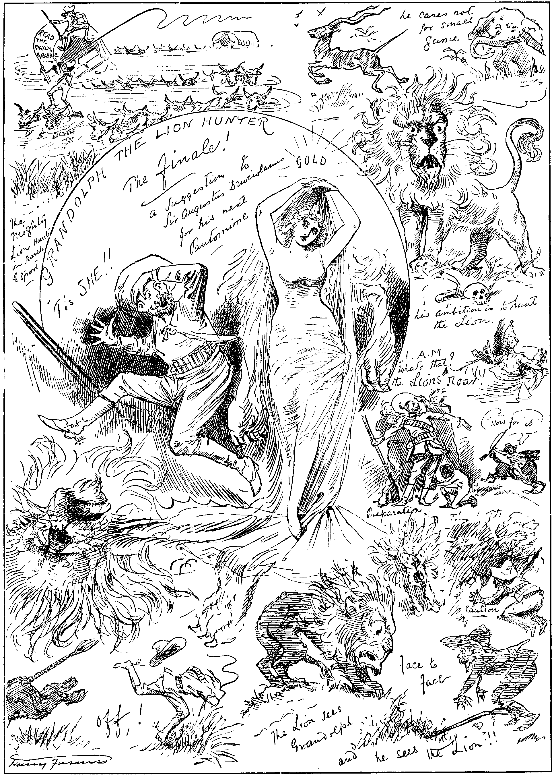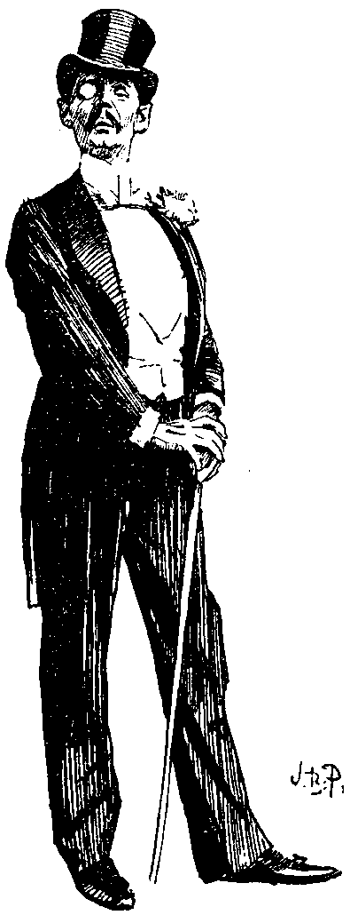 she cries in sham deprecation, but all the while she "winks the other eye" in a way her hearers quite understand. "Cabby knows his fare," and the Music-hall Muse knows her clients. What, we wonder, would be her reception did she really carry out her ironically pretended protest and sing to the chuckling cads who applaud her, the following version of her favourite lay?